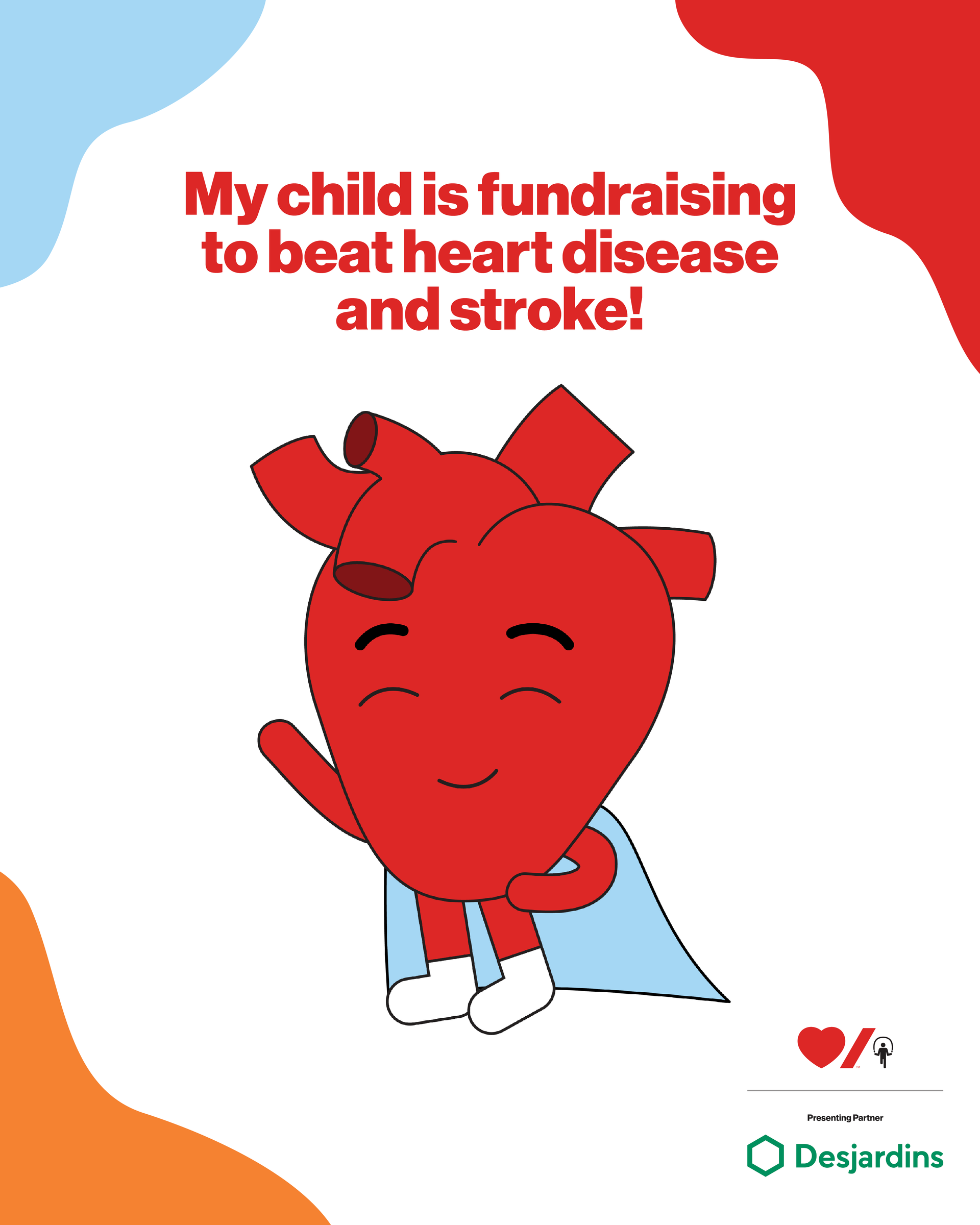 Participating in Jump Rope for Heart will teach your kids the importance of good heart and brain health, healthy habits, and giving back! They'll join more than 850,000 kids moving to a healthier future each year across Canada. Plus, their fundraising will help save lives and beat heart disease and stroke.